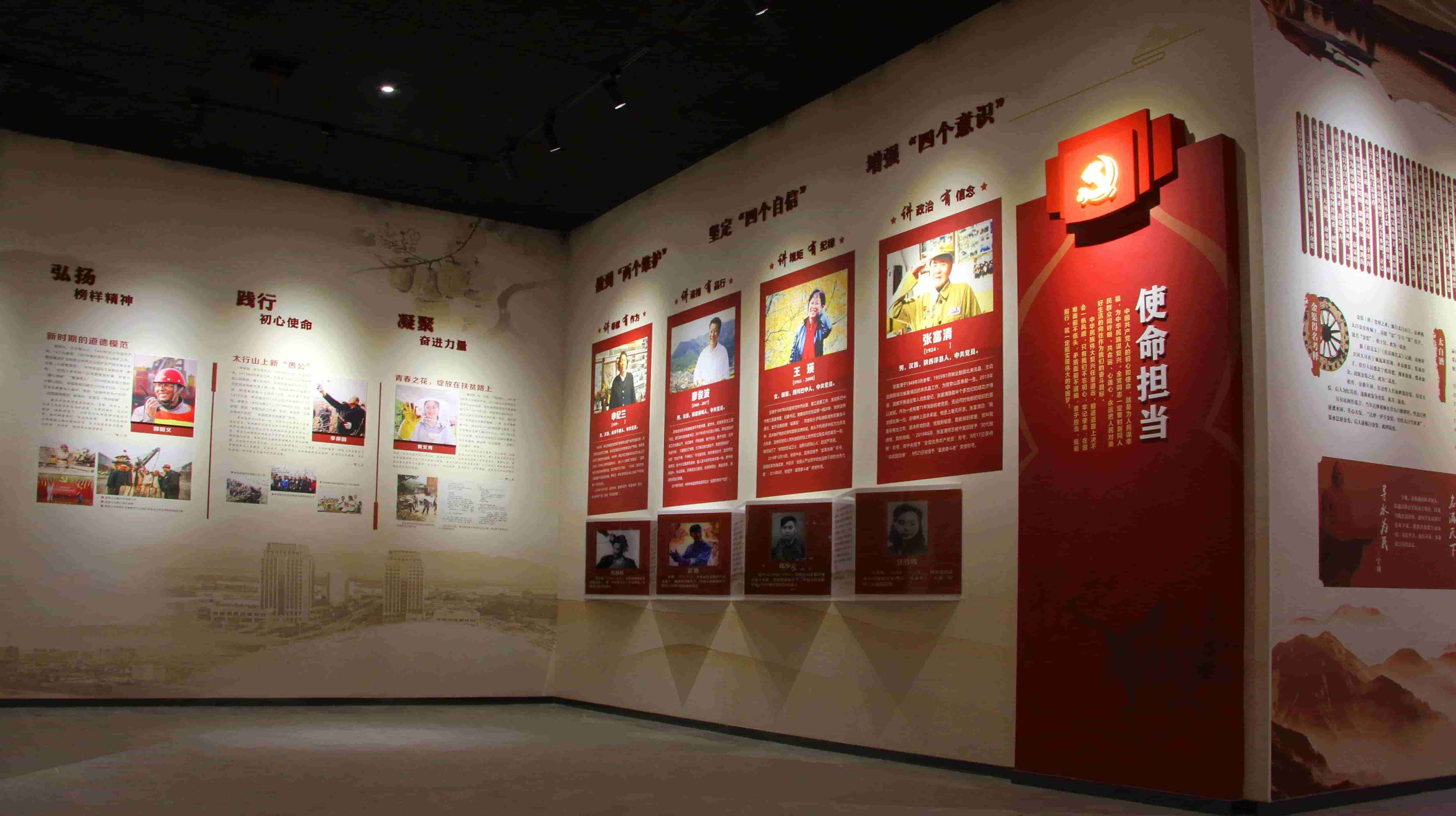 以中共重大历史事件为主题,递进式墙面造型,通过图文展示中国共产党发展的艰难岁月和光辉历程,重现我党波澜壮阔的发展壮大史。