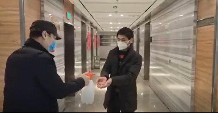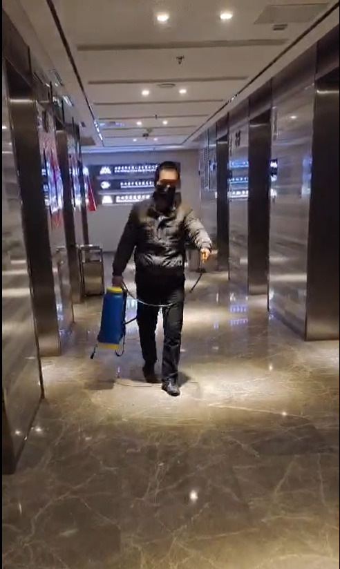 一大早,负责区域消毒工作的同事就提前完成了公共区域的消杀工作,努力做到全面消杀,不留死角。